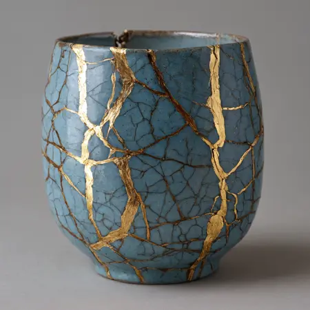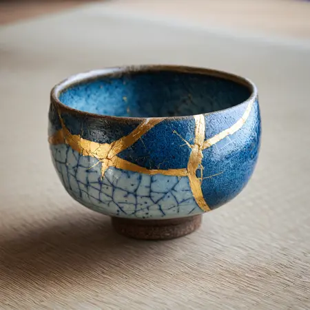 킨츠기란 금으로 깨진 도기를 수리하여 균열을 숨기지 않고 강조하는 일본의 예술입니다.