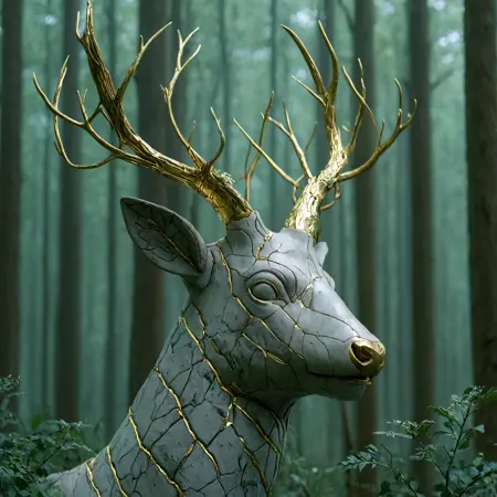 이 효과는 도자기에 국한되지 않고 갑옷, 초상화, 동물, 풍경까지 확장되어 복원 과정에서의 회복력, 불완전함, 우아함을 강조합니다.