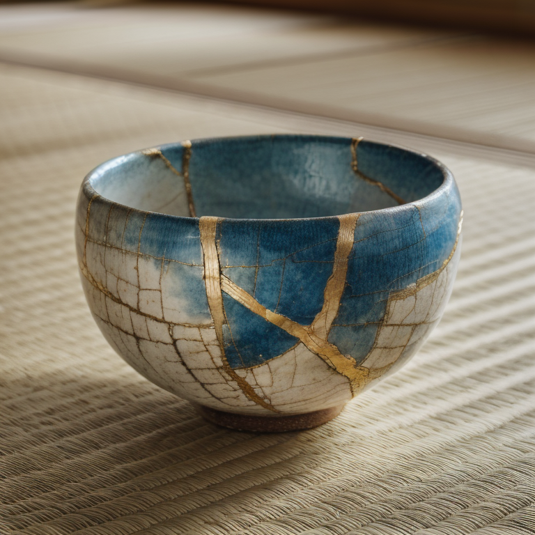 킨츠기란 금으로 깨진 도기를 수리하여 균열을 숨기지 않고 강조하는 일본의 예술입니다.