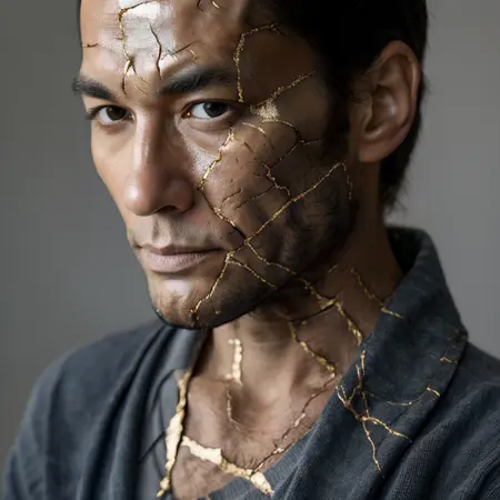 이 효과는 도자기에 국한되지 않고 갑옷, 초상화, 동물, 풍경까지 확장되어 복원 과정에서의 회복력, 불완전함, 우아함을 강조합니다.