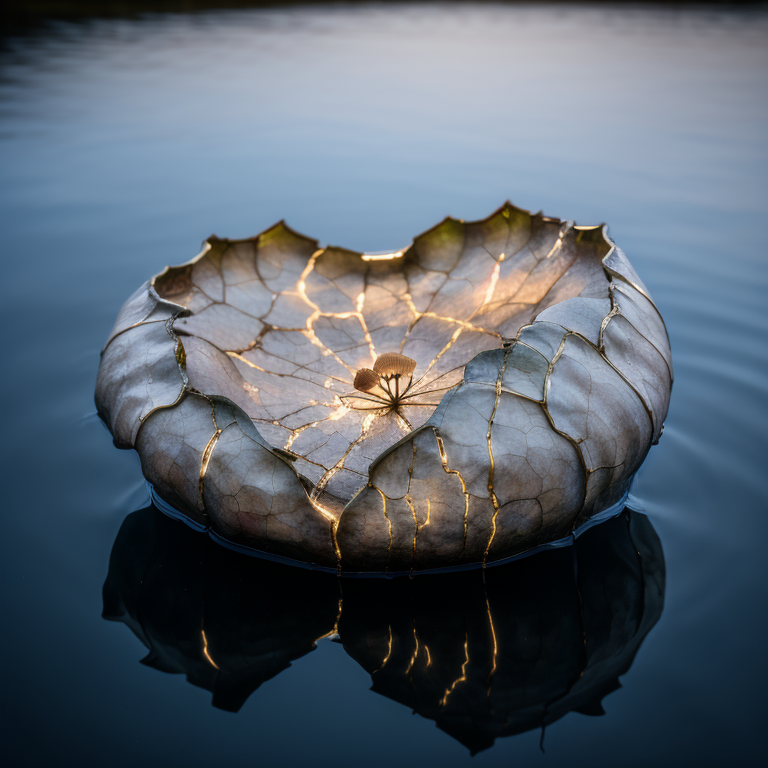 금으로 된 수선의 이음새가 균열을 아름다움으로 변환합니다.