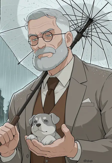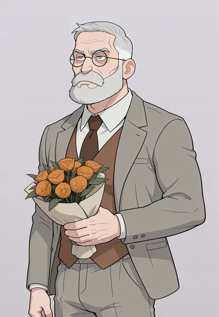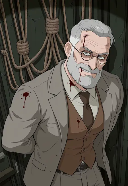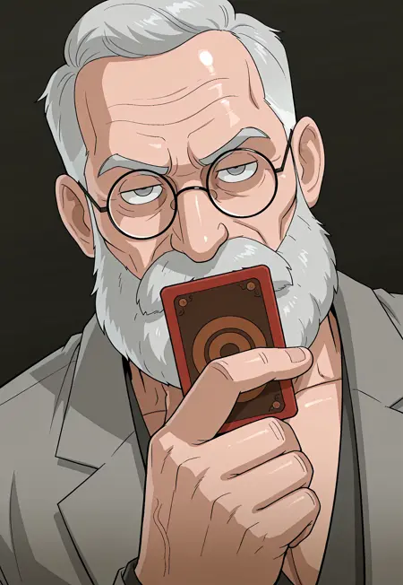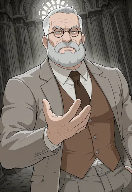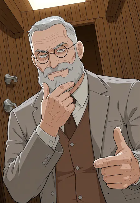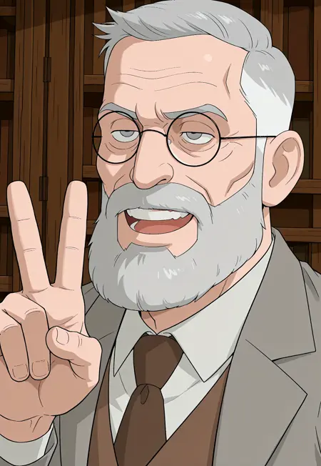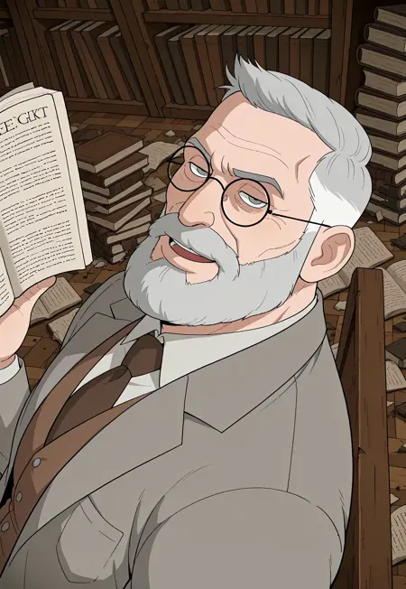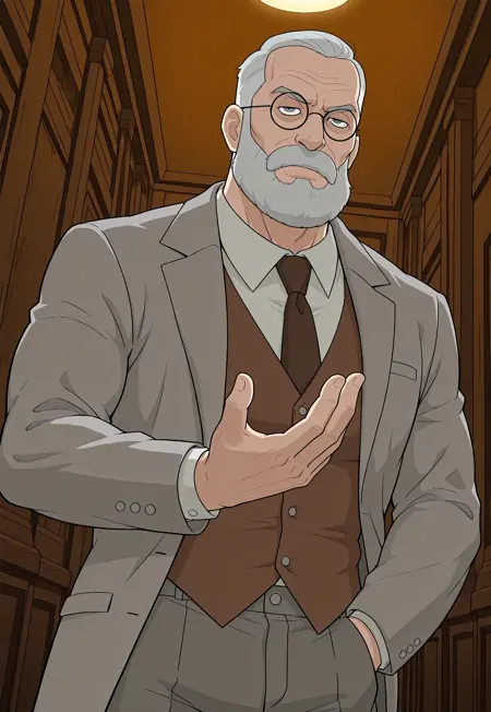 old_man_psychiatrist, (회색 눈:1.4, 거대한 동공:1.2), 흰색 머리카락, 회색 수염, 둥근 안경,