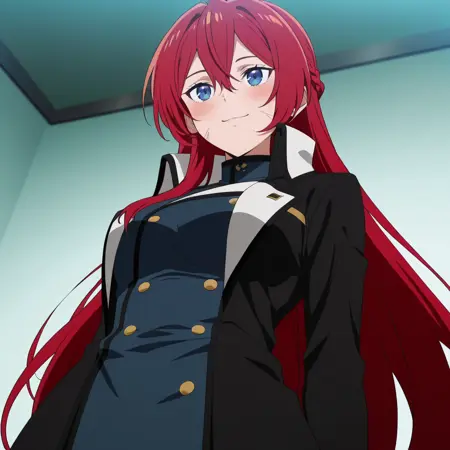 FionaUniform, 긴 머리, 유니폼, 군대, 검은 코트, 높은 칼라, 흰 장갑,