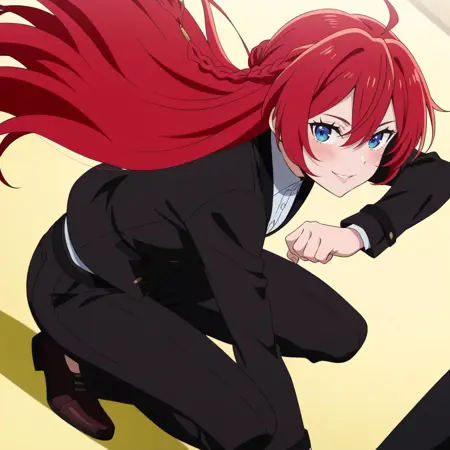 FionaFormal, 긴 머리, 검은 재킷, 단추 달린 재킷, 긴 소매, 검은 바지, 정식 복장,