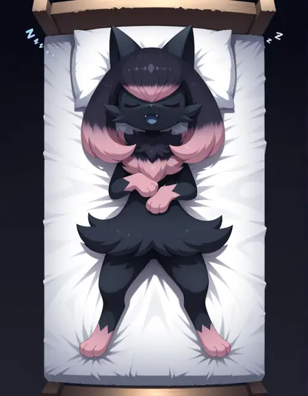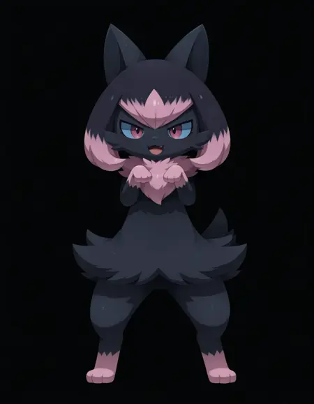 pokemon_\(creature\), black_fur, pink_eyes, blue_sclera, black_hair, pink_hair, multicolored_hair, gradient_hair,