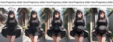 这是一个滑块式LoRA——你可以选择任意权重,尽情尝试,找到最适合你的设置。正权重会添加孕肚效果。你甚至可以使用更高的权重,例如8及以上——具体效果取决于角色和检查点。