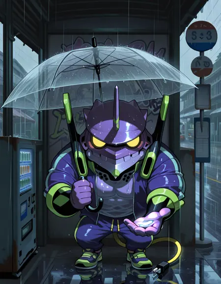 트리거 단어: evancho, eva 01, mecha, chibi, 노란 눈, 동공 없음, 전기 플러그 노란 꼬리