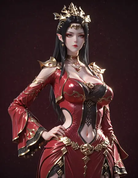 Excels at generating her iconic red, black, and gold outfits, including her armored ceremonial gown and other dresses seen in the series.