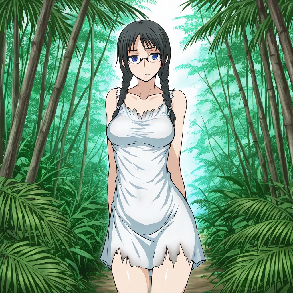 Furukawa: TZI、Furukawa、黒髪、ロングヘア、ツインテール、青い目、眼鏡、中程度の胸