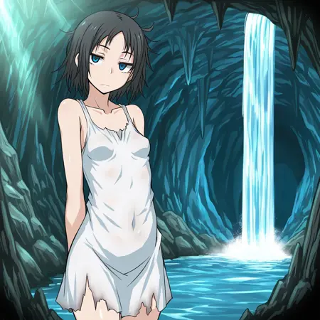 Kunihiko: TZI、Kunihiko、黒髪、ショートヘア、分け目のある前髪、乱れた髪、青い目、小さな胸