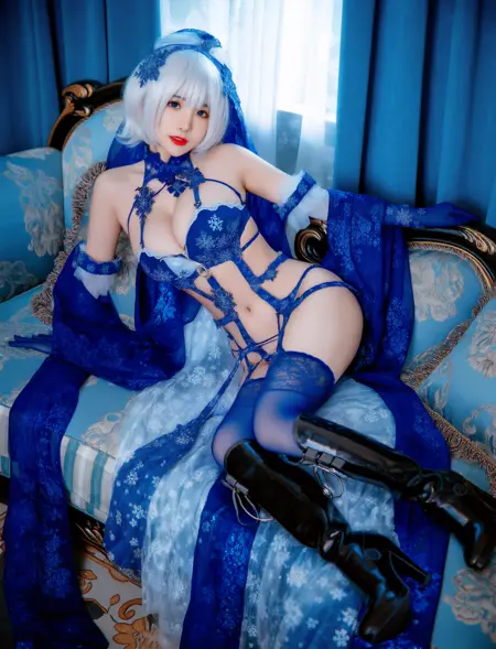 stylesexnsfwblue headbandblue lace brawhite short hairsnowflake pattern- 黑色高筒皮靴:black high boots / black high boots吊带袜:suspender stockings / suspender stockings蓝色蕾丝内裤:blue lace panties / blue lace panties- 蓝色长手套:blue long gloves / blue long gloves- 雪花图案:snowflake pattern / snowflake pattern- 蓝色蕾丝内衣:blue lace bra / blue lace bra精致妆容:elegant makeup / elegant makeup- 蓝色发带:blue headband / blue headband- 白色短发:white short hair / white short hairelegant makeup