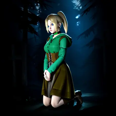 1个女孩,单人,金色头发,蓝眼睛,马尾辫,项圈,连帽衫,束腰,裙子,靴子