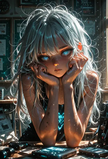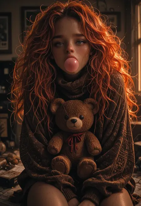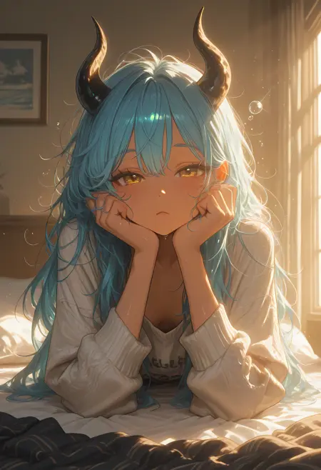 此LoRA旨在: 创建凌乱的头发、困倦的眼神和惊艳的卷发。