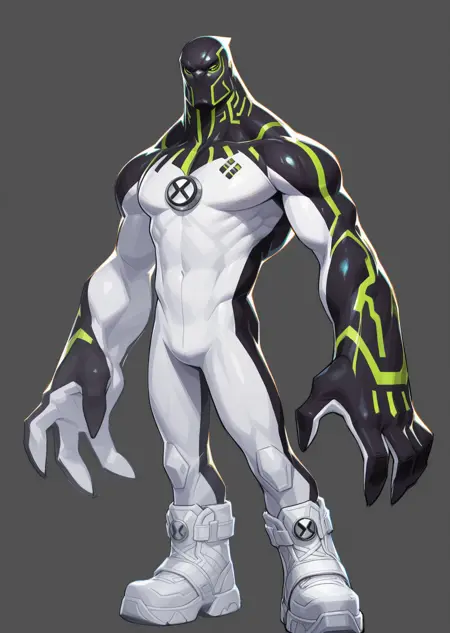 프롬프트: 검은 피부, 업그레이드, 갈바닉 변형, 다색 피부, 줄무늬,