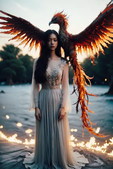 내 loRA는 오류율이 비교적 낮은 피닉스를 생성합니다. 테스트해보았으며, 오류가 보이면 인페인팅을 사용하여 디테일을 수선하세요.