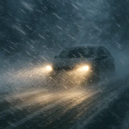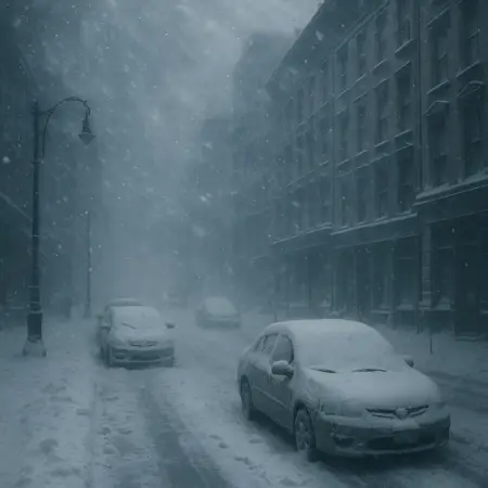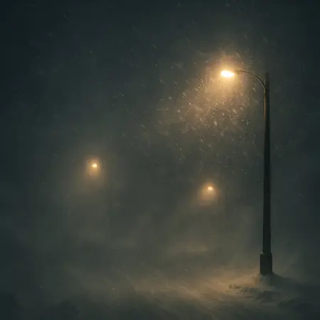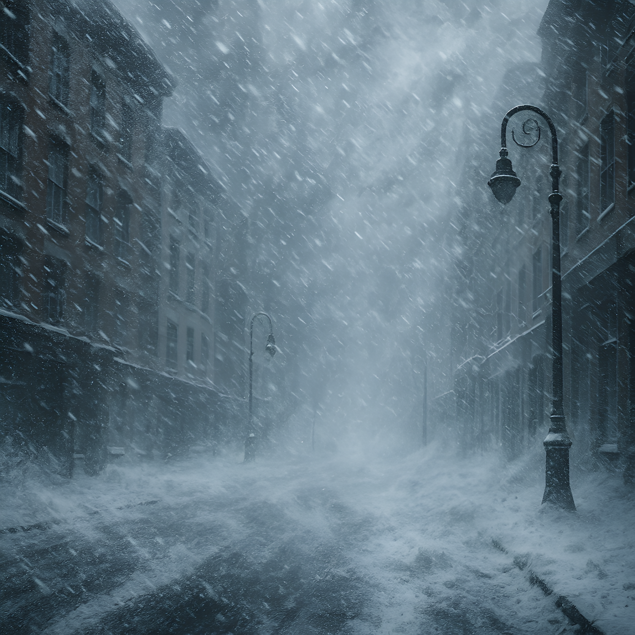 Trained on ~100 curated images of heavy stormy snowfall with diverse settings (mountains, forests, cities, animals, survival shots).
