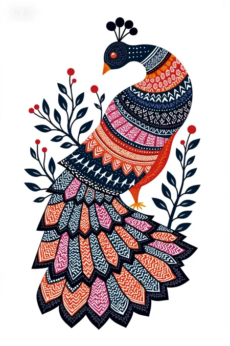 For special artistic styles, you can further add words like Gond painting, Indian tribal art, colorful, ornamental, hand-drawn patterns, folk art, highly detailed, vector art, white background, etc. Each set of prompts captures themes of spatiality, solitude, minimalism, and fantasy, suitable for creating a quiet and mysterious atmosphere.