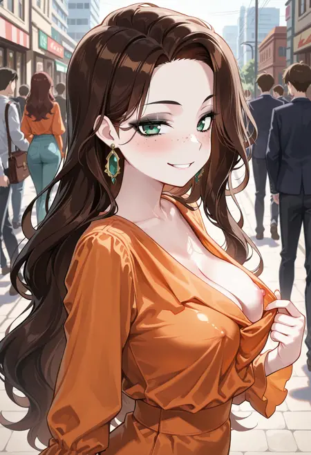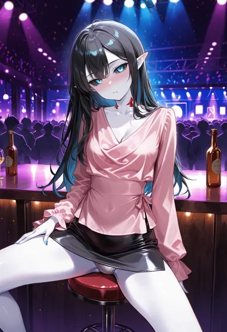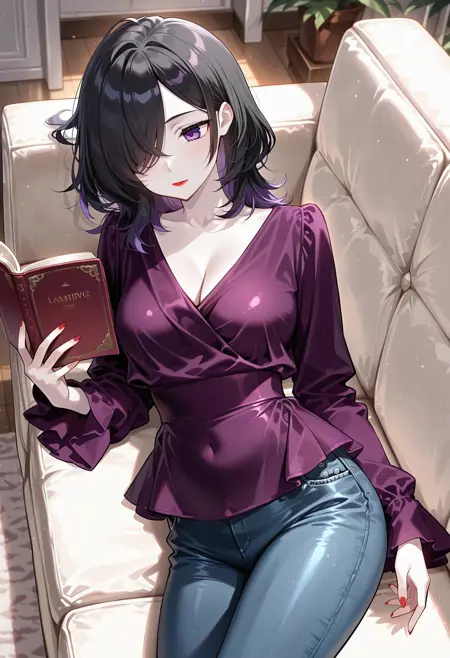Trigger word: blouse,shirt,long sleeves,cleavage,satin blouse,folds,collarless,