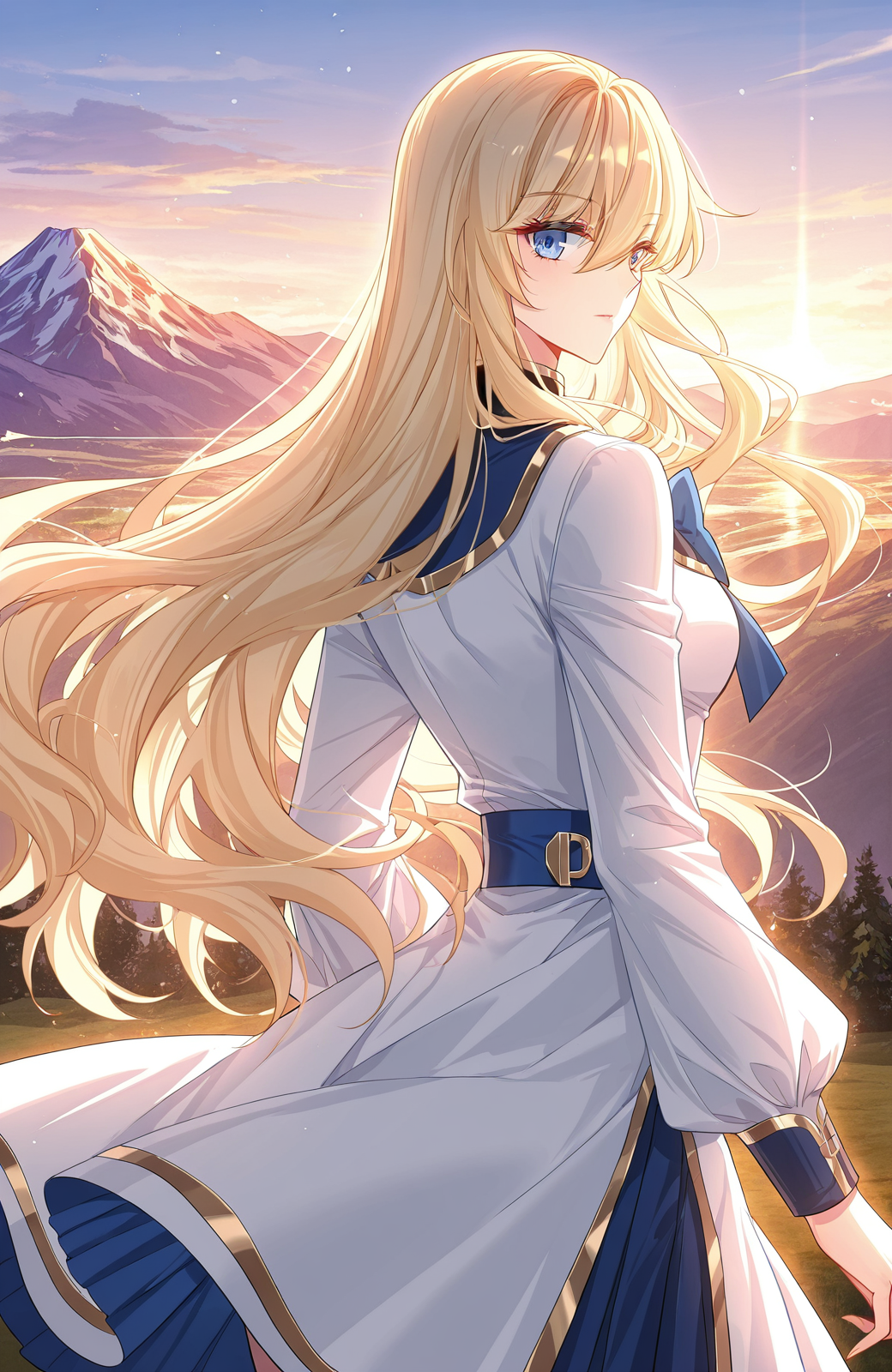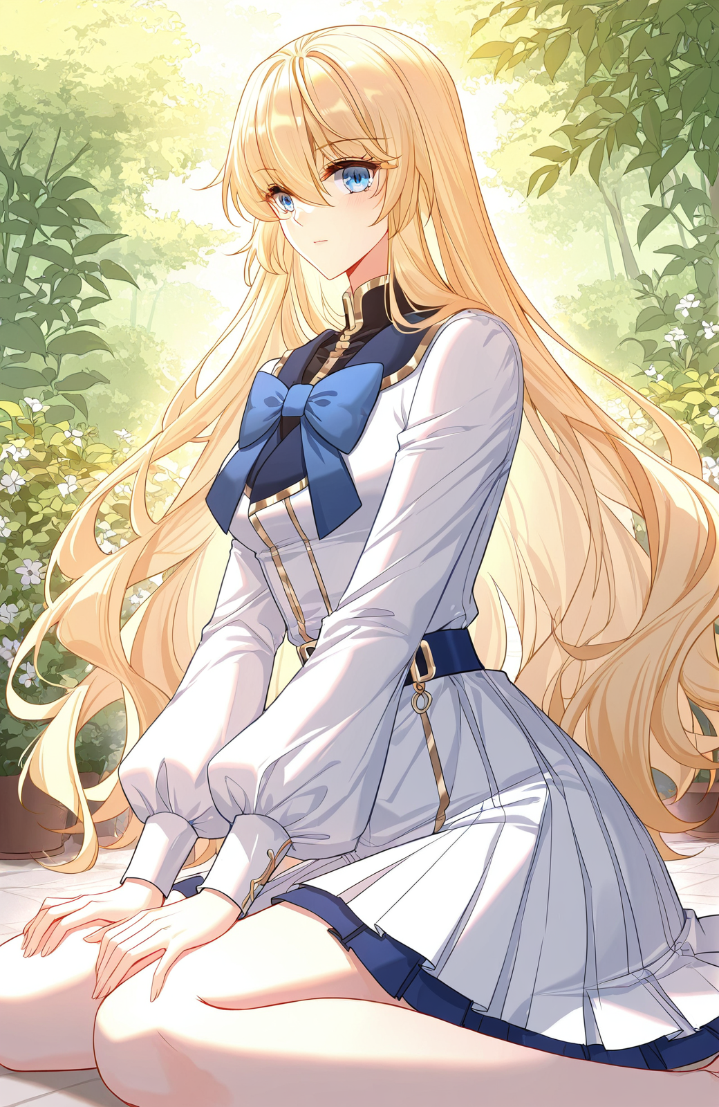 ユハン、1人女の子、シングル、青い目、金髪、長い髪、ストレートヘア、不規則な前髪、目の間の髪、サイドロックス、ほぐれた髪、