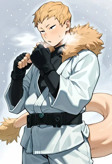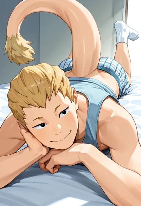 Generates images of Mashieao Ojiro from My Hero Academia. Trained to generate a variety of outfits. This Lora was trained on official anime and manga images, official illustrations and fanart.
