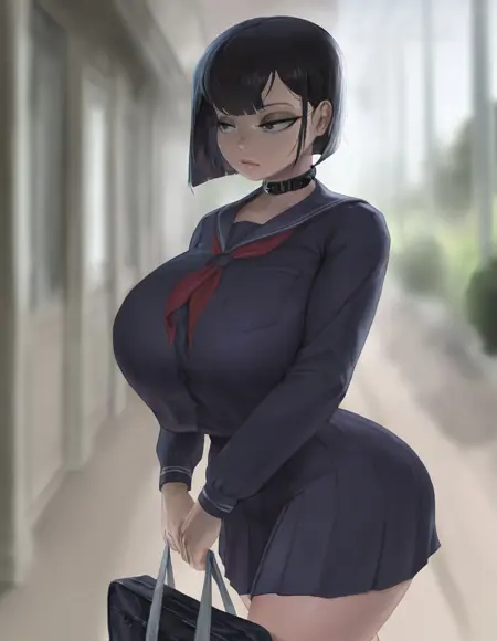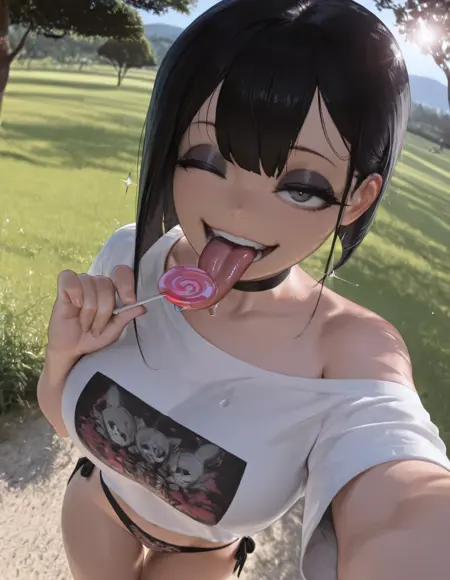 可选描述:黑发、眼影、圆环耳环、半闭的眼睛、眼线
