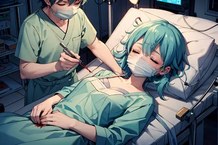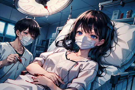 增加男性角色的数量,例如1girl, 1boy, 2boys, multiple boys,因为外科医生仅以男性素材表现。尽管角色本身性别可能为女性,但在手术场景中,女性角色可能更合适。