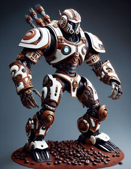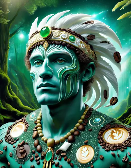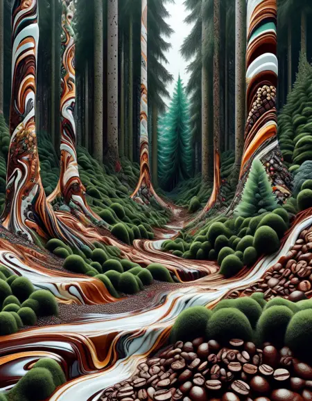 欢迎来到一个由拿铁、咖啡和巧克力的浓郁精华精心打造的美味世界。你脚下的地面是由咖啡渣构成的马赛克,形成温暖而芳香的织锦。河流流淌着丝滑的拿铁,空气中弥漫着可可的甜美芬芳。