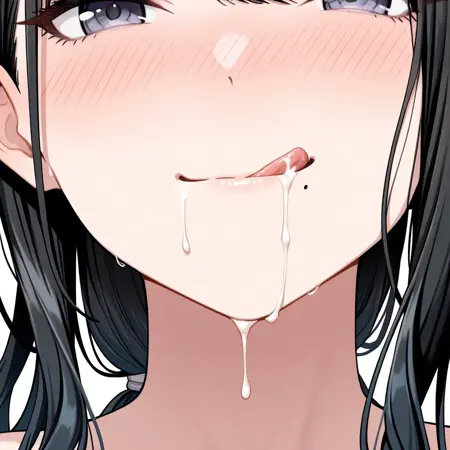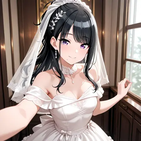 long hair, breasts, black hair, purple eyes, ponytail, mole under mouth, swept bangs, sidelocks,