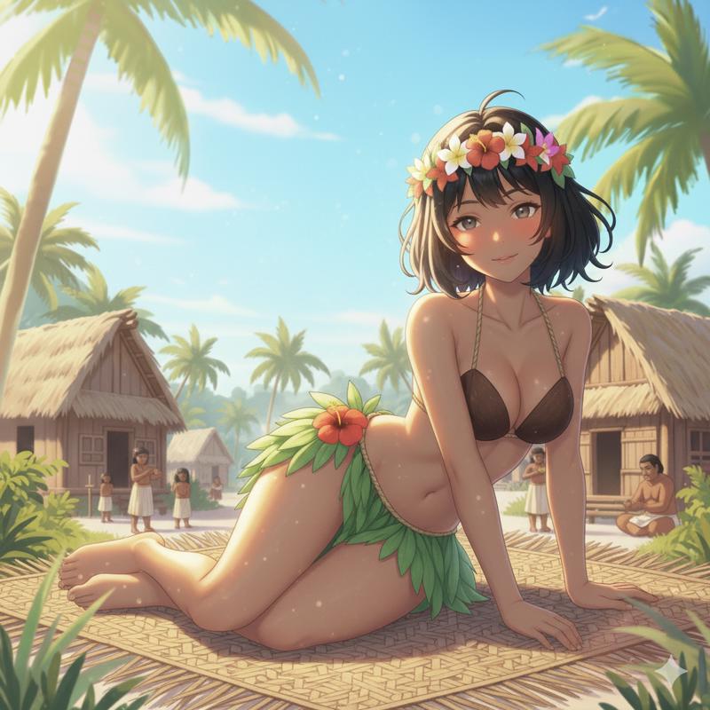 Lulu, 1girl, solo, Black Hair, short hair, ahoge, Dark Skin, Dark-Skinned Female, gray eyes