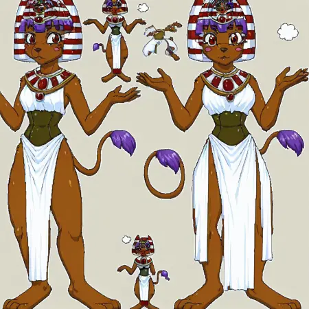 使用新的LORA小马进行一次新尝试,以便这个新的LORA斯芬克斯能非常类似于电子游戏系列《克利奥帕特拉财富》中的斯芬克斯。