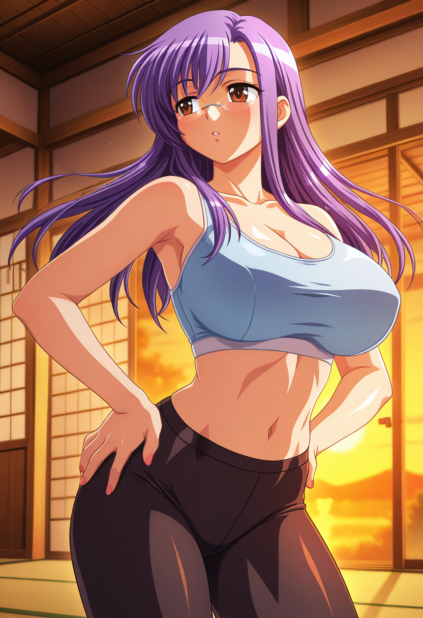 kyoukoww, 成熟女性, 棕色眼睛, 眼镜, 紫色头发, 短发, 马尾, 侧发, 大胸部,