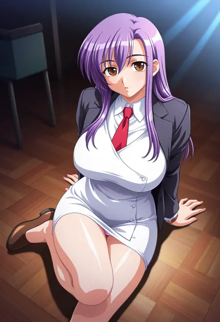 kyoukoww, 成熟女性, 棕色眼睛, 紫色头发, 长发, 侧发, 大胸部,