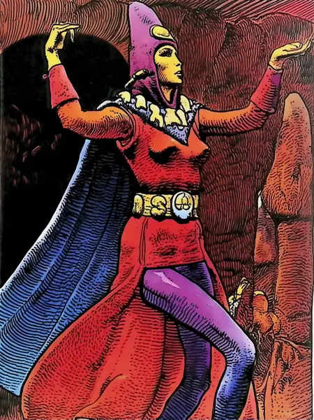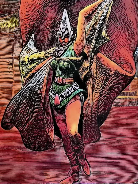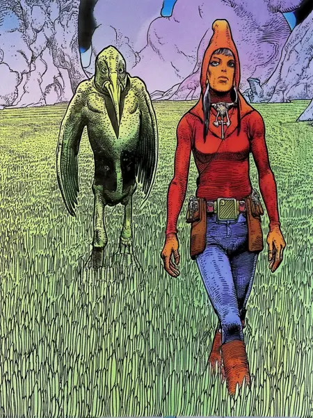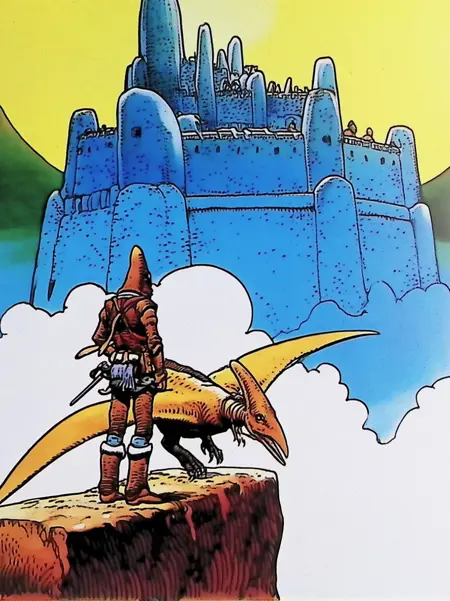 Arzach was one of Moebius earlier works. The model exclusively uses data from that era.