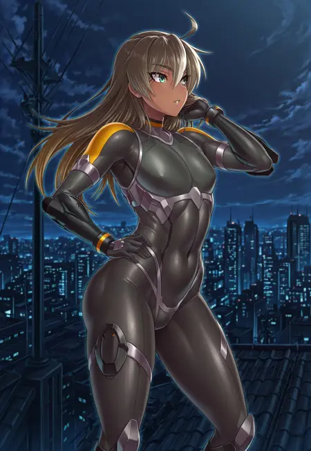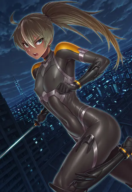 태그: 안드로지너스, 텐마 요이, 검은 피부, 긴 머리, 높은 포니테일, 아호게, 이톤 헤어, 황금-갈색 머리, 파란-녹색 눈