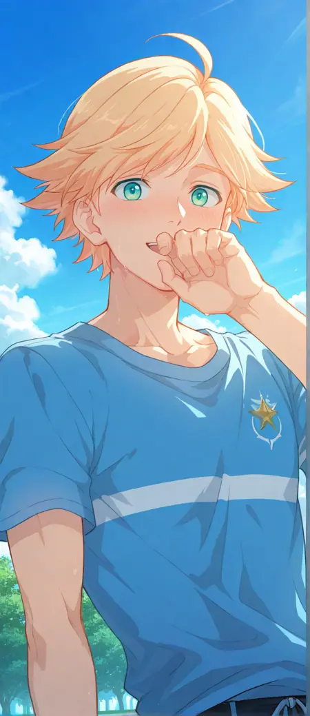 トリガー単語: hunter springfield, 金髪, 青い目, 緑の目, アホ毛