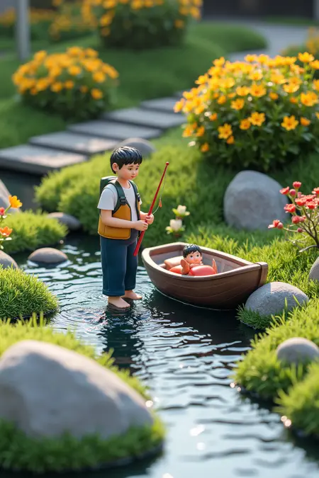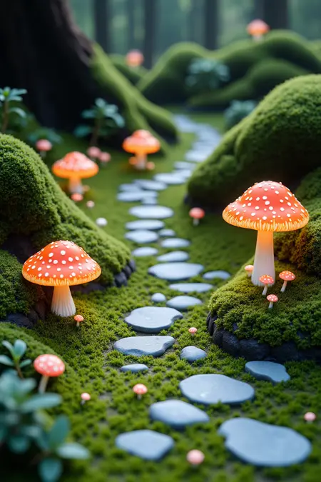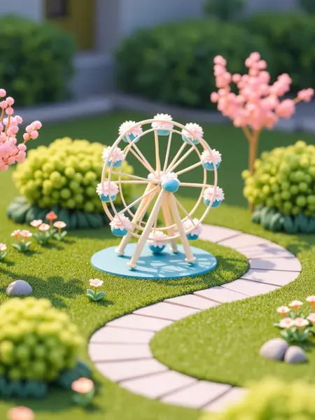 建议:将 miniature_sc, miniature garden 放在前面,可结合写实摄影描述词 Realistic, Photography 使用