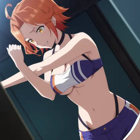 SRAKlum,五彩头发,橙色头发,短发,黄眼睛,嘴下有痣,黑色项圈,天线头发,