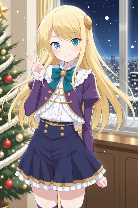yumina urnea belfast, blonde hair, heterochromia, blue eye, green eye, long hair, hair ornament