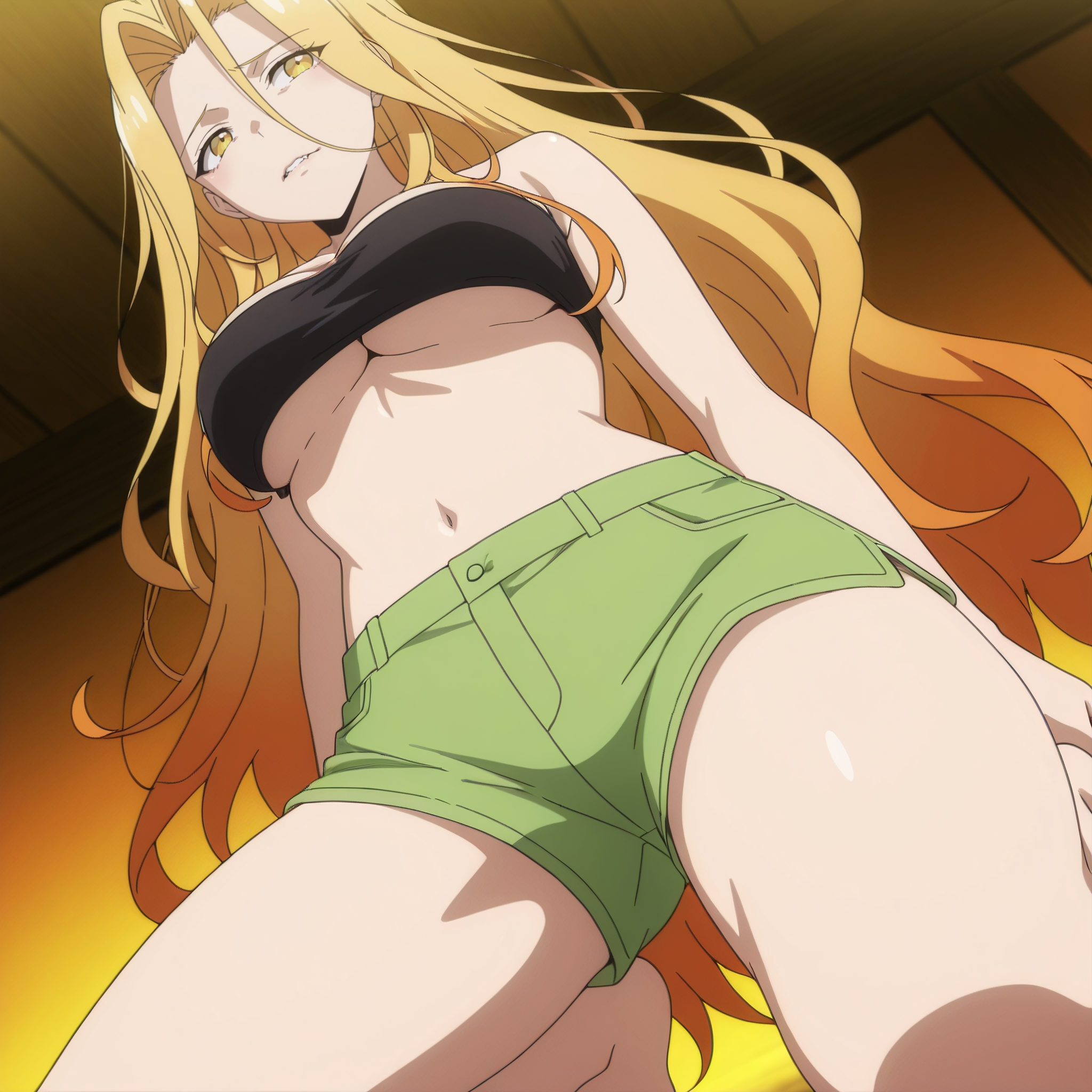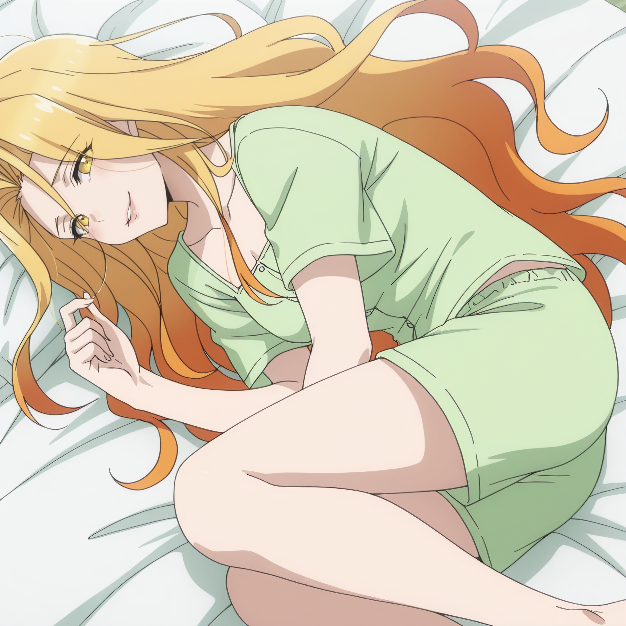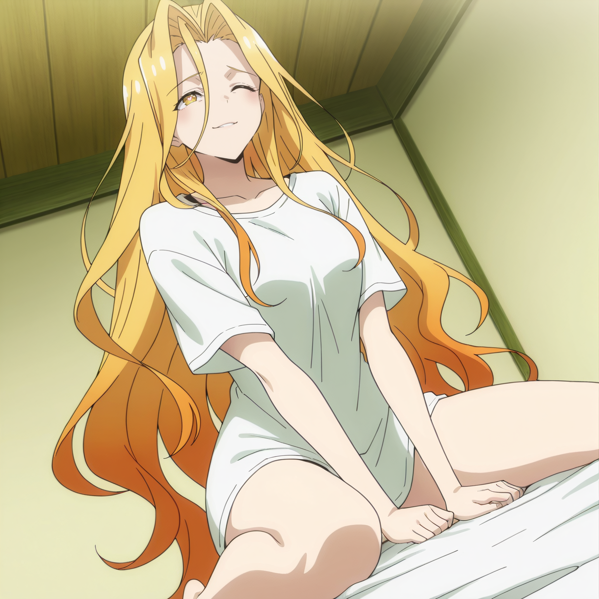 SRASilvie, 노란 눈, 다색 머리카락, 그라데이션 머리카락, 금발, 주황색 머리카락, 매우 긴 머리카락, 눈 사이의 머리카락,