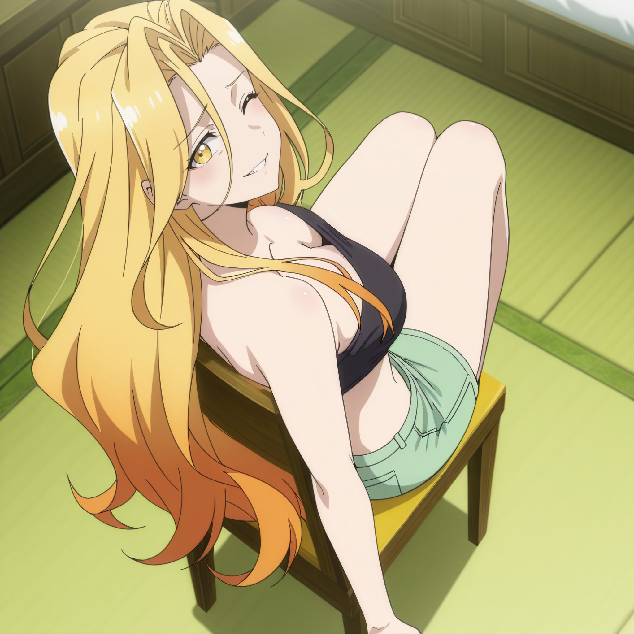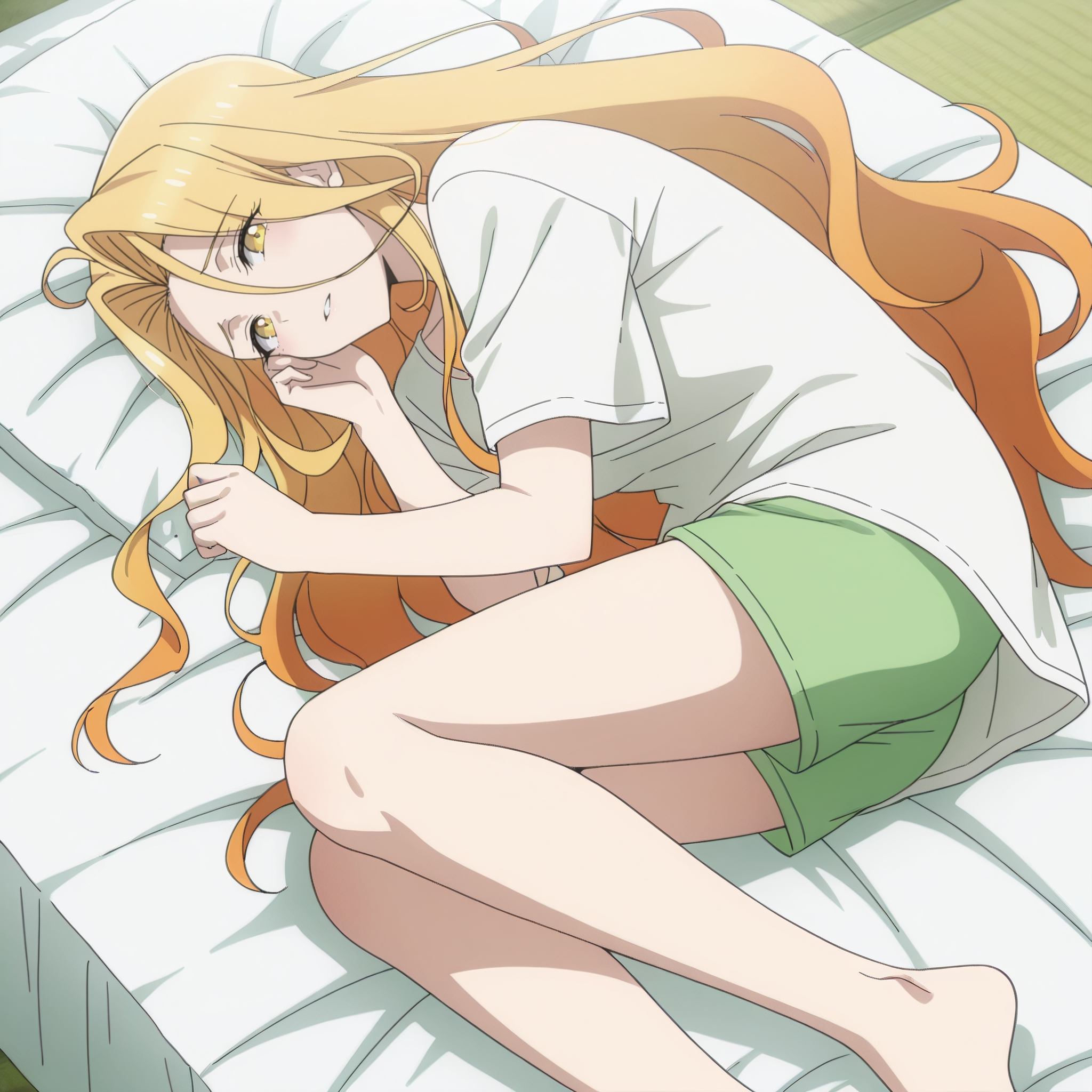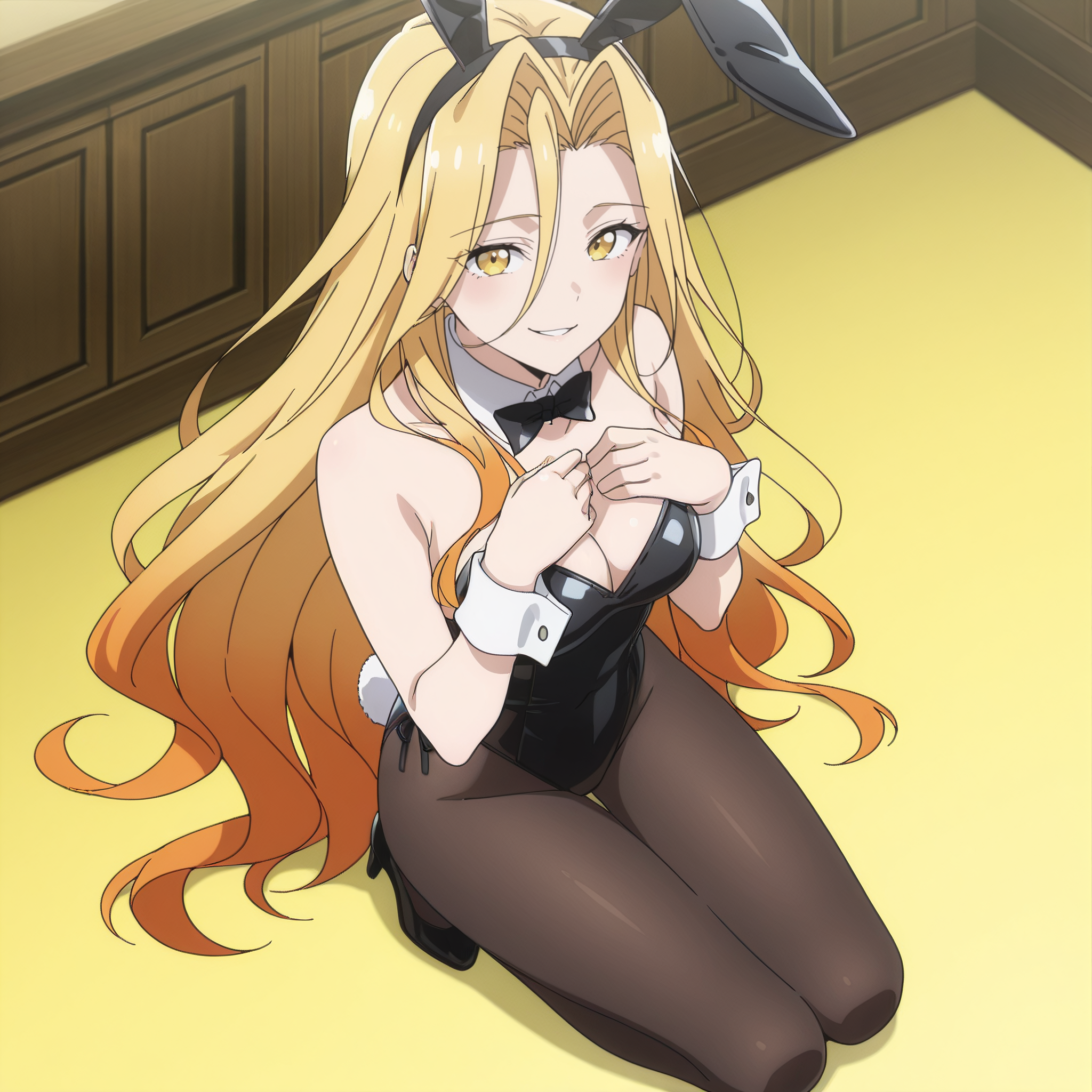 SRASilvie, 노란 눈, 다색 머리카락, 그라데이션 머리카락, 금발, 주황색 머리카락, 매우 긴 머리카락, 눈 사이의 머리카락,