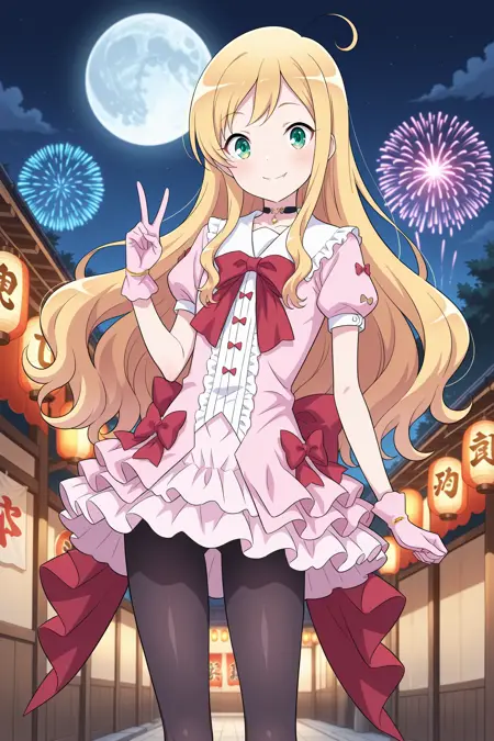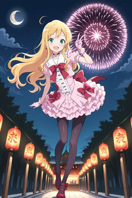 荷叶边连衣裙,层叠裙,粉色连衣裙,荷叶边,红色蝴蝶结,红色领结,蓬松短袖,衬衫,粉色手套,黑色裤袜,红色鞋子