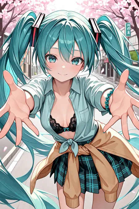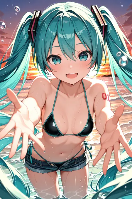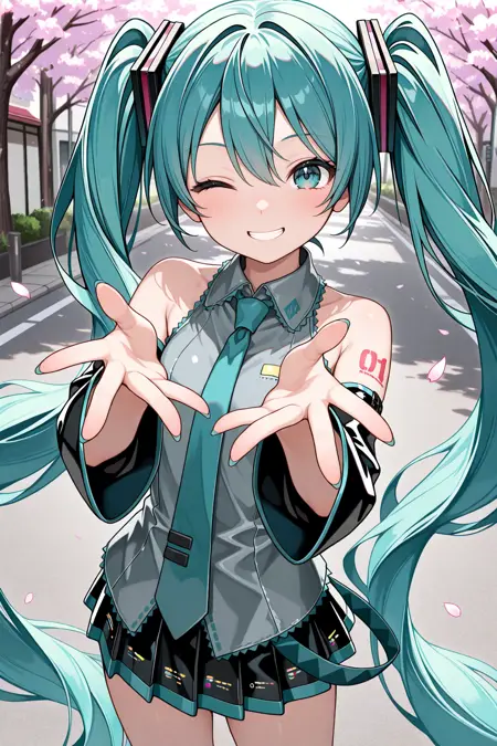 Hatsune Miku, 파란 눈, 연청색 머리, 극도로 긴 머리, 트윈테일, 머리 장식, 팔 문신