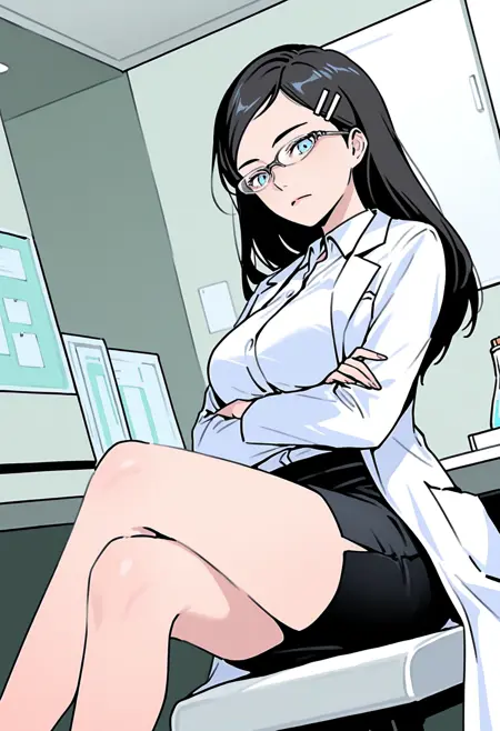 dress shirt, lab coat, pencil skirt,