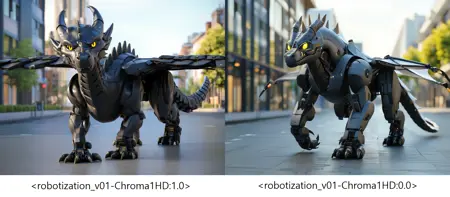 例如:机器人、机甲、交织着电线的面板、腿上带(颜色)的面板、装甲下可见的(颜色)电线核心、金属装甲、合成肌肉、布线、液压系统、发光的(颜色)点缀、六边形图案、分段尾巴等。