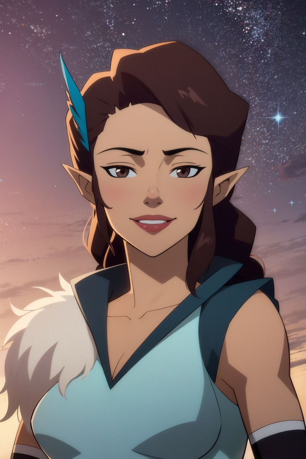 Basic prompts : 1girl, brown hair, brown eyes, braid, dark skin, pointy ears