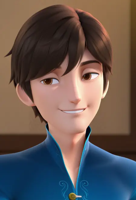 merlin, dark brown hair, brown eyes, short hair, bangs