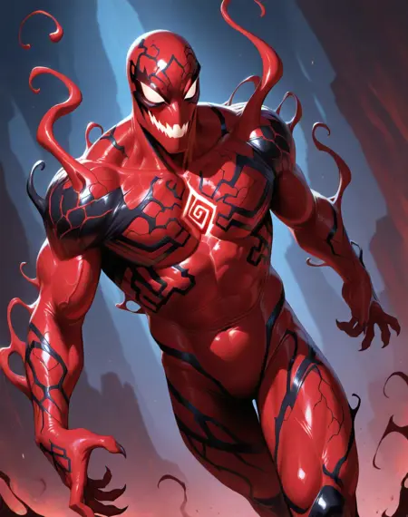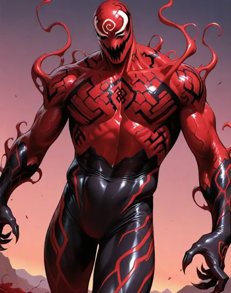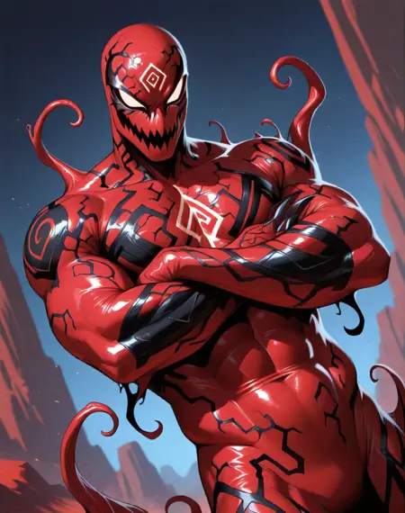 This is an Illustrious style lora for the character Carnage from Marvel Comics. This version is the style of Carnage is the general look of Carnage from when he made a cult for himself. Noted for the swirl on the forehead.