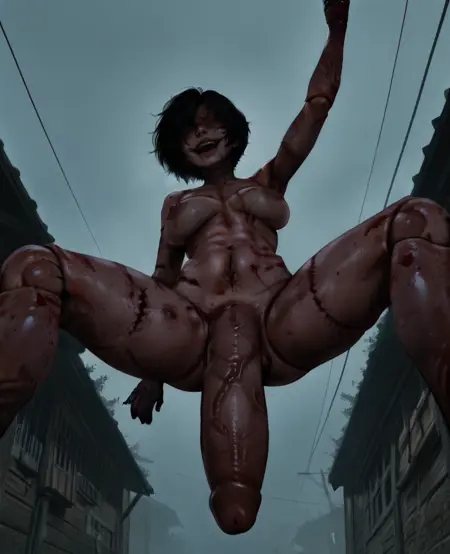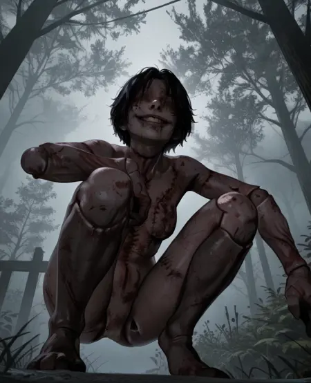 裸、または乳首が覆われている、通常は傷や血、縫い跡があります