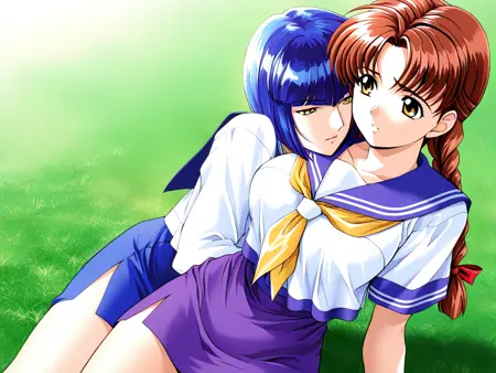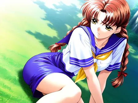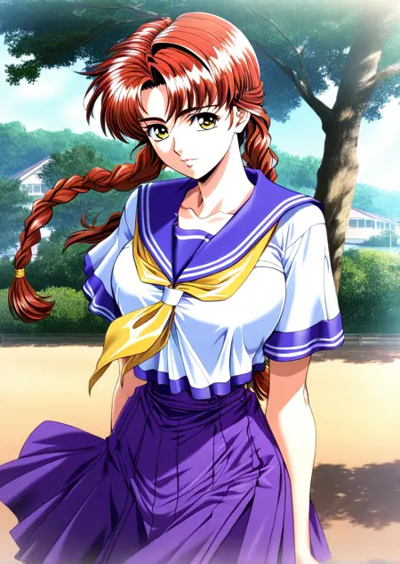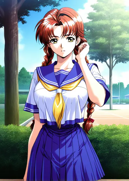 school uniform, serafuku, blue skirt, yellow neckerchief,