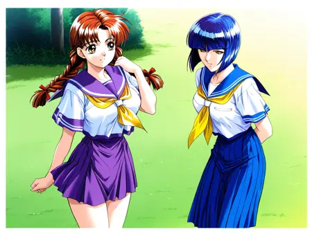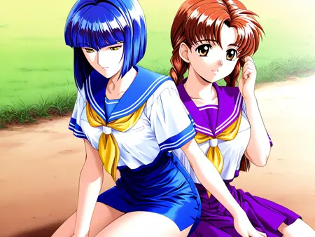 サンプルの二人同時に出してるのはガチャですが拡張機能のForge Attention Coupleを使うときれいに出るはずです。環境がある人はお試しあれ